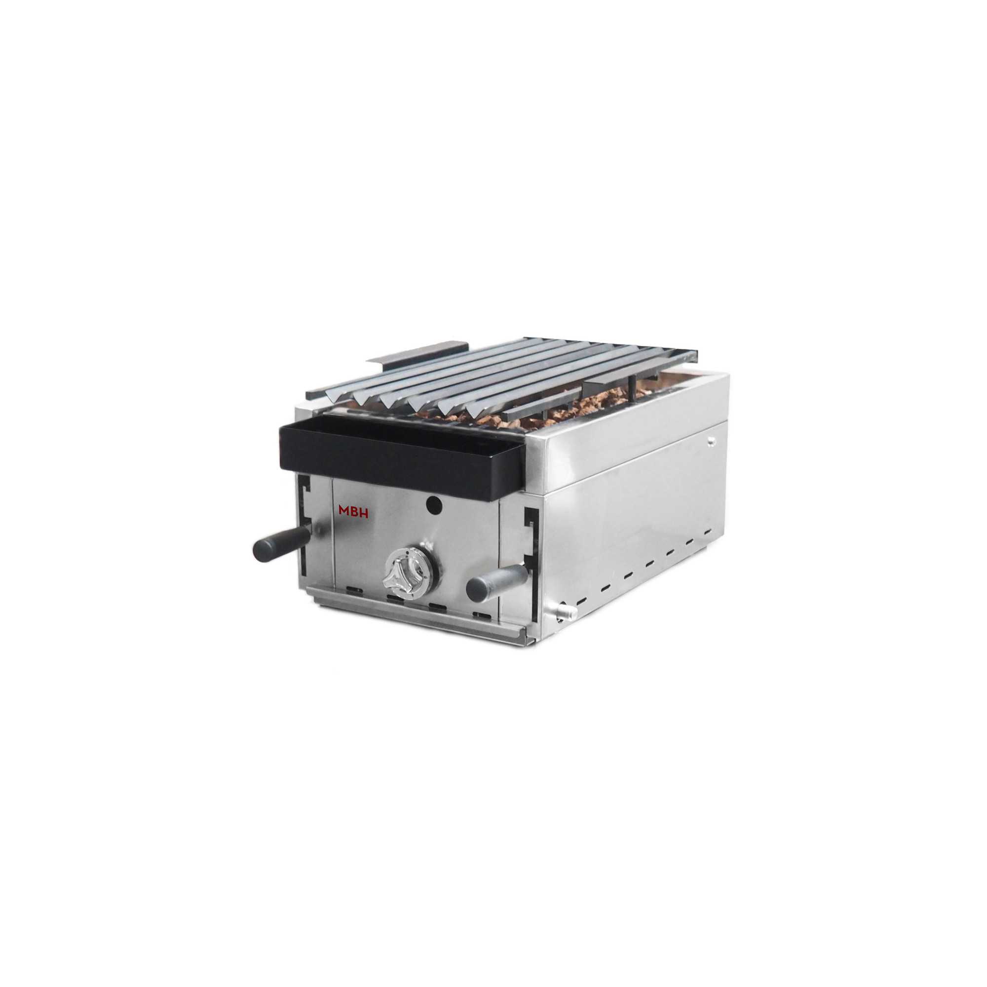 Barbacoa de 35 a gas de lava volcànica, aquest model treballa amb una graella sencera elevable en 3 alçades pavonada o en acer inoxidable. Preparada per a gas butà/propà. Inclou injectors per a gas natural.
