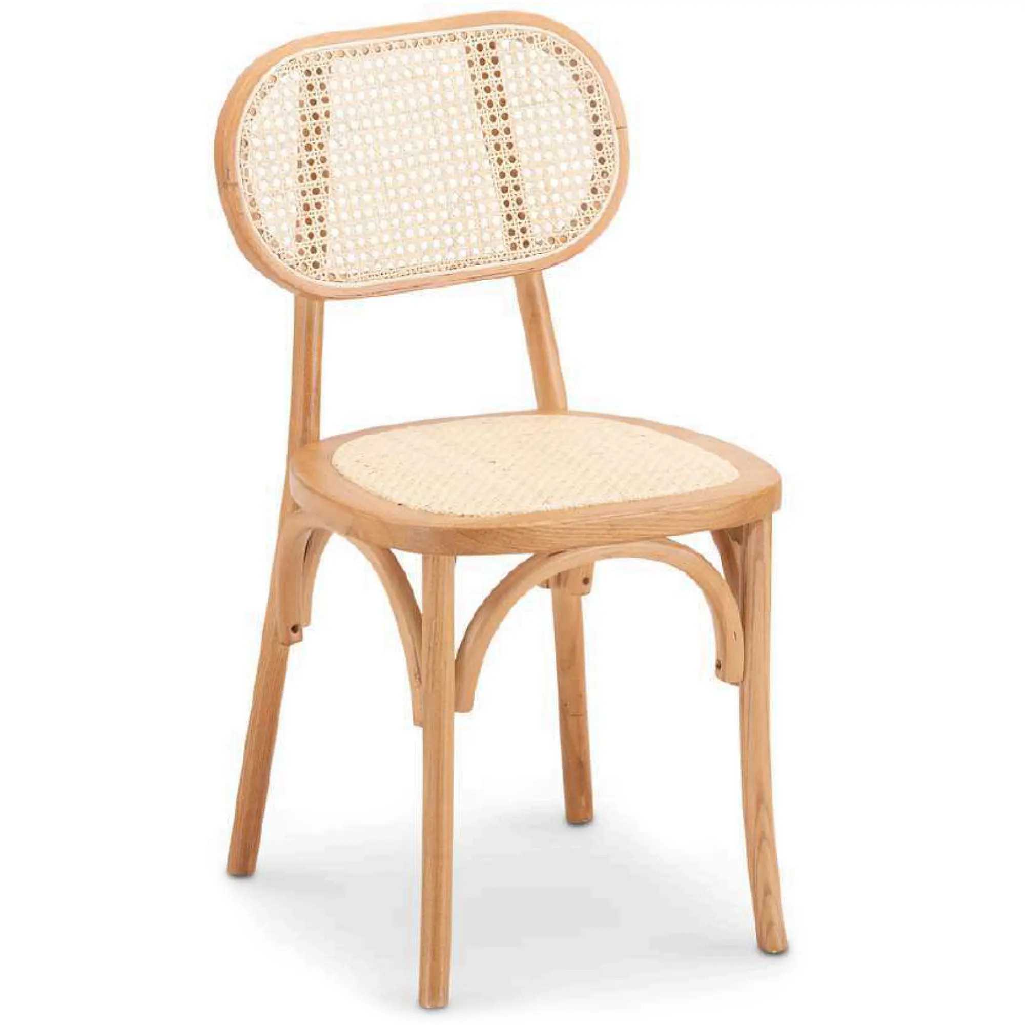 La cadira Linda ofereix un disseny càlid i natural, ideal per a interiors d’hostaleria, restaurants i cafeteries. L’estructura de fusta d’om proporciona resistència i elegància, mentre que el seient i el respatller trenats en color natural aporten comoditat i un estil acollidor.