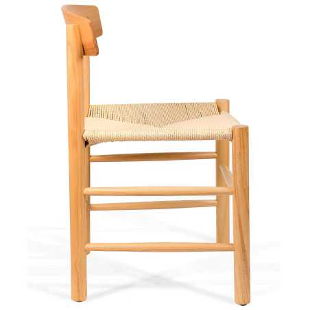 La cadira Yuta combina un disseny elegant i funcionalitat per a l’ús professional en interiors d’hostaleria, cafeteries i restaurants. L’estructura de fusta de cautxú aporta resistència i un acabat natural, mentre que el seient trenat en fil kraft waterproof garanteix durabilitat i fàcil manteniment.