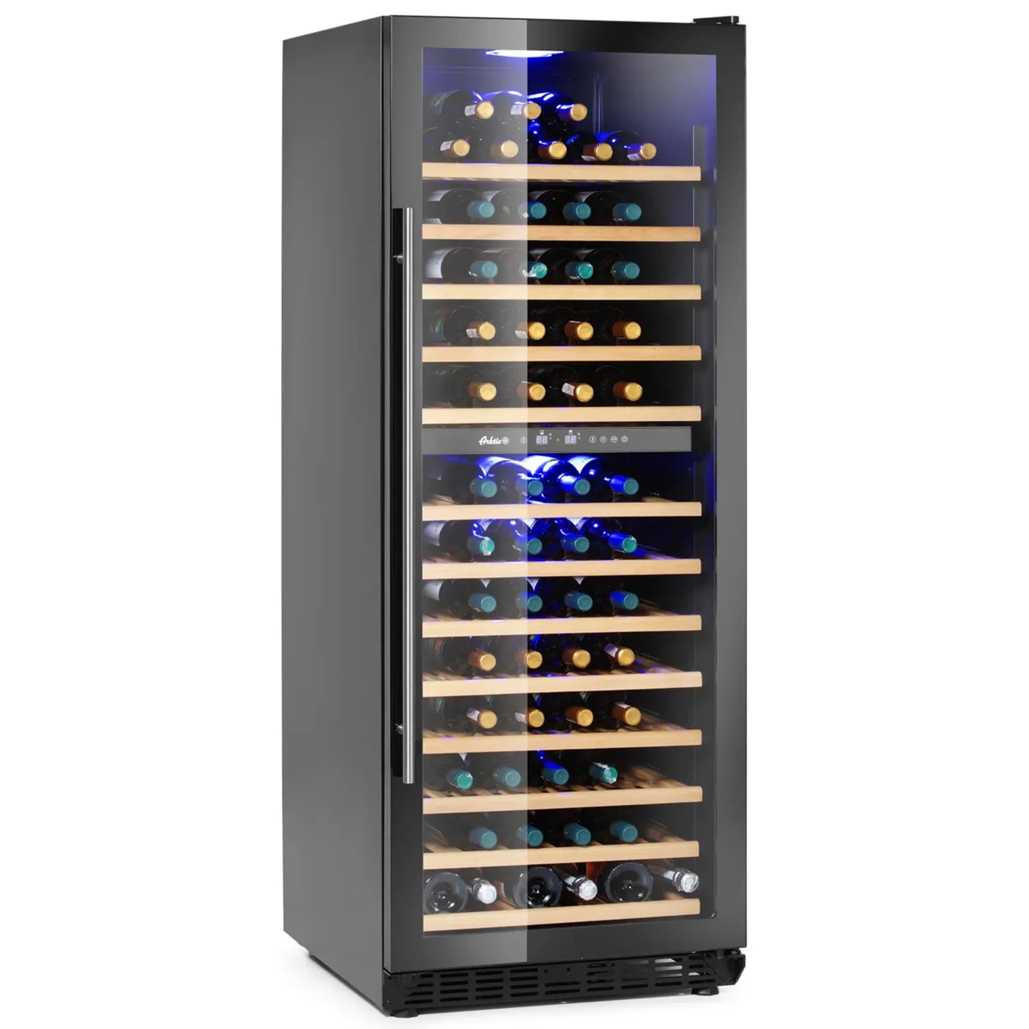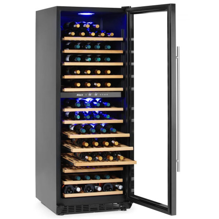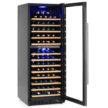 Aquesta vinoteca de doble zona de 135 ampolles és un refredador de vi professional ideal per a bars, restaurants i hotels que necessiten conservar cada ampolla a la temperatura de servei ideal. Gràcies a les seves dues zones de temperatura, permet ajustar dos rangs independents (5 a 22°C) per separar vins blancs i negres, escumosos o rosats, garantint una conservació estable, ordenada i a punt per al servei.