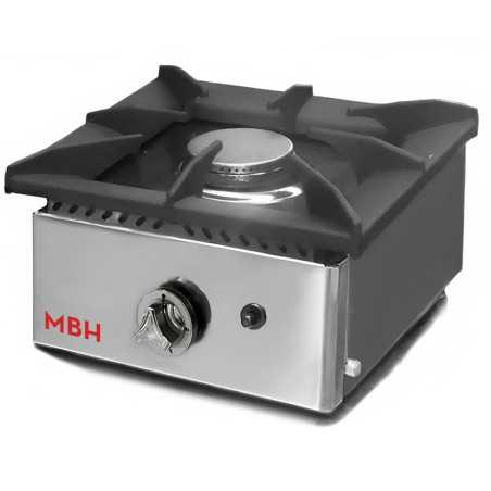 Fogó industrial de gas amb 1 foc convertible en planxa. Inclou una planxa laminada de 40x40 per posar sobre el fogó i una greixera per a la planxa. Cuina professional de sobretaula per a bar i restaurant.