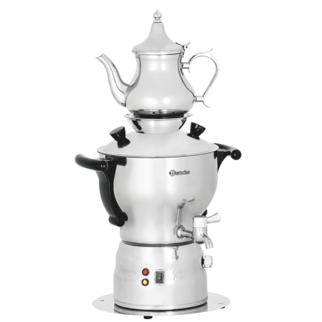 Descobreix l’autèntica experiència del te amb el samovar professional de 3L. El seu disseny elegant i funcional el converteix en un imprescindible per a hostaleria, bars i entorns industrials. Equipat amb doble resistència, permet bullir aigua a 100°C i mantenir-la calenta a 90°C, optimitzant el consum energètic. Inclou una tetera d’acer inoxidable i colador de te, ideal per preparar infusions de manera tradicional i eficient.