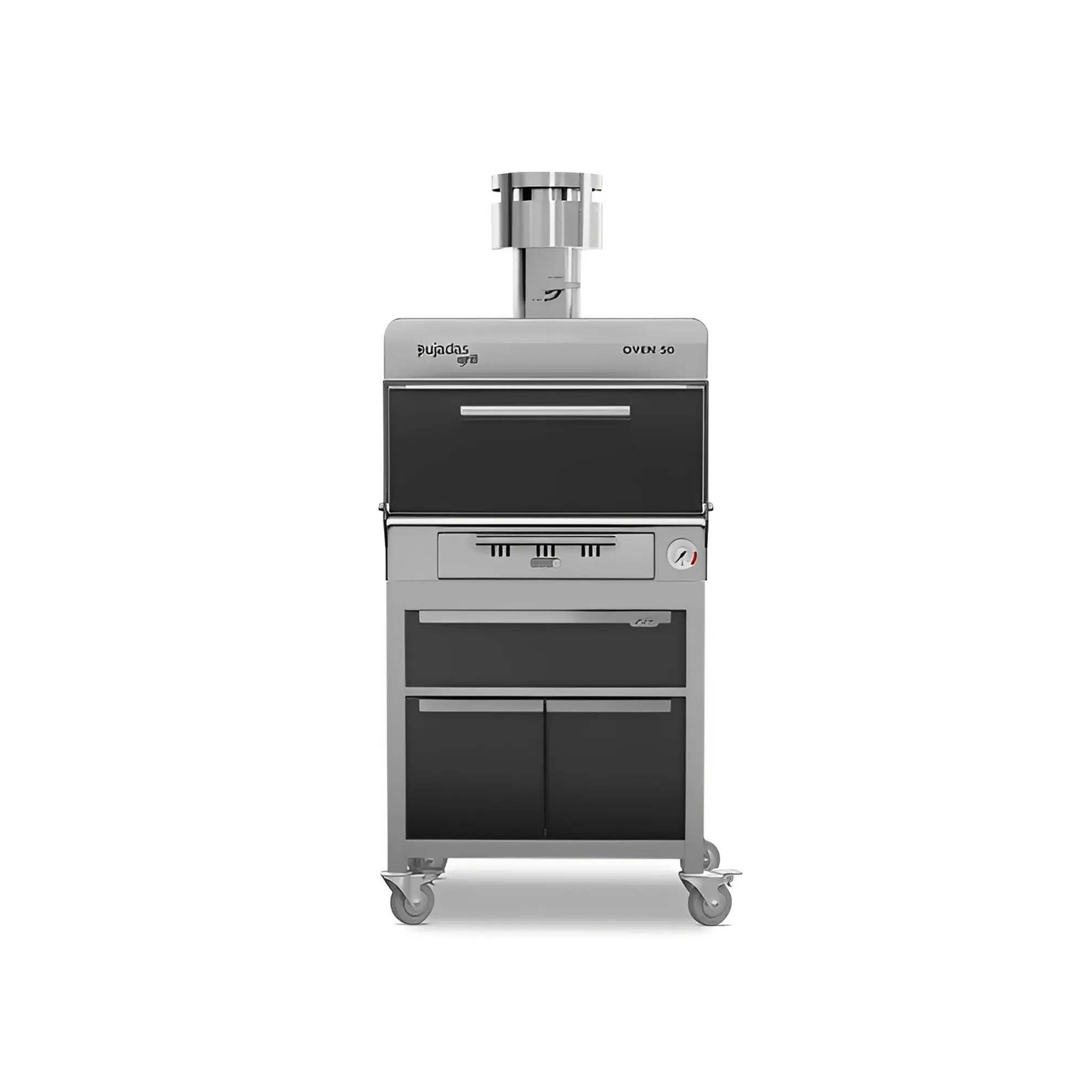 El Forn de brasa professional amb emmagatzematge i safata calenta per a 50 comensals és la solució ideal per a cuines professionals que necessiten altes prestacions i mobilitat. La seva estructura d'acer inoxidable amb aïllament tèrmic i la base amb rodes permeten una operació eficient. Inclou un calaix escalfador per a safates GN 1/1 per mantenir els plats a la temperatura de servei.
