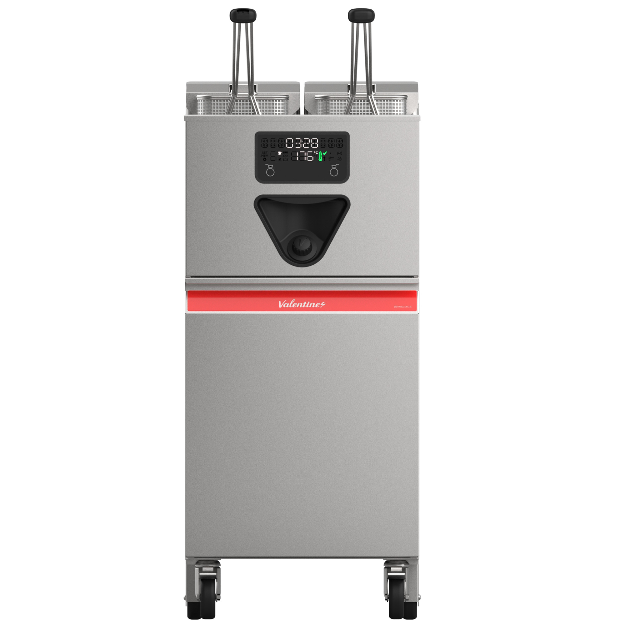 Les fregidores professionals Valentine Core Smart Plus estan dissenyades per oferir la màxima rapidesa, precisió i eficiència en cuines professionals d’alta exigència. Equipades amb sistemes intel·ligents com la filtració d’oli integrada, elevadors automàtics de cistelles i control de cocció adaptatiu, garanteixen un rendiment superior optimitzant el consum energètic. La seva construcció robusta en acer inoxidable, amb cubetes embotides i caixa elèctrica extraïble tipus cartutx, facilita la neteja i el manteniment diari. Tots els models disposen de rodes ajustables en alçada (850 a 900 mm) amb frens a les rodes davanteres, assegurant així estabilitat perfecta fins i tot en superfícies irregulars.