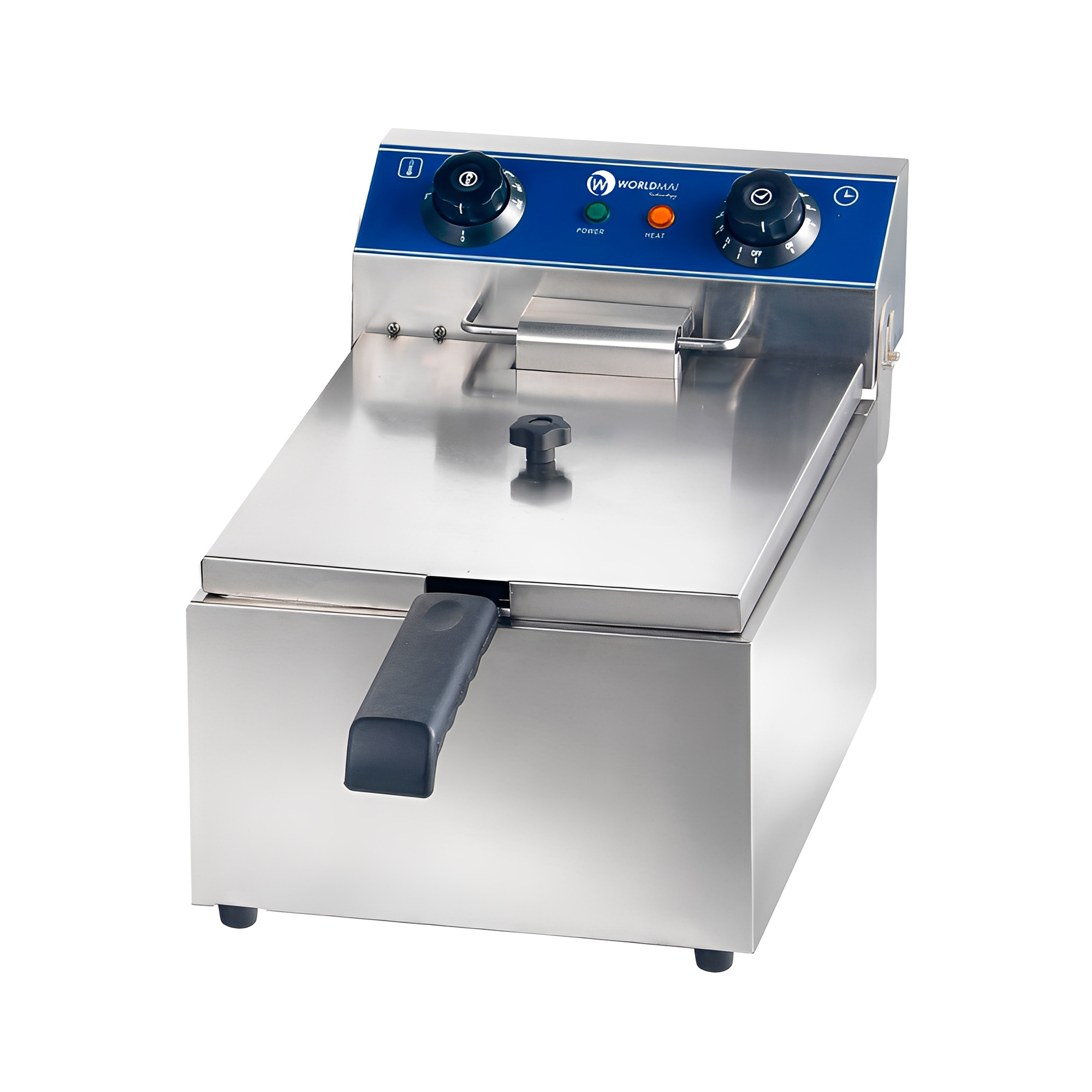 La fregidora elèctrica professional Worldmai de 6 litres és la solució ideal per a espais reduïts. Incorpora temporitzador, termòstat de seguretat i una reixeta que assegura una fregida uniforme i de qualitat.