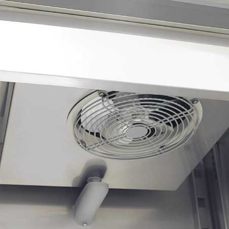L’armari refrigerat industrial de 386 litres està dissenyat per oferir un rendiment òptim en entorns de cuina professional i hostaleria. La seva estructura d’acer inoxidable, el sistema de control electrònic de gran format i la refrigeració amb aire forçat el converteixen en una solució segura, robusta i higiènica.