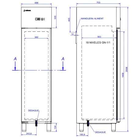 L’armari refrigerat Gastronorm GN 1/1 en acer inoxidable està pensat per oferir un rendiment professional en entorns exigents com cuines industrials, tallers alimentaris i restaurants. Amb estructura robusta, control electrònic de gran format i refrigeració ventilada, assegura una conservació eficient i estable.
