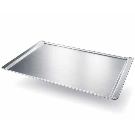 Safata d’alumini llisa embotida de 435x315 mm, ideal per a l’ús professional en cuines, forns i obradors. El seu disseny compacte facilita la manipulació i les vores arrodonides aporten seguretat i higiene en el treball diari.
