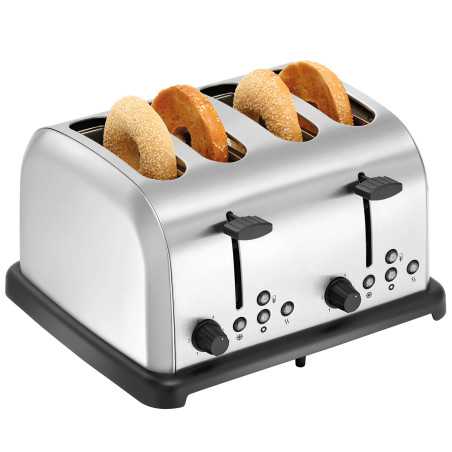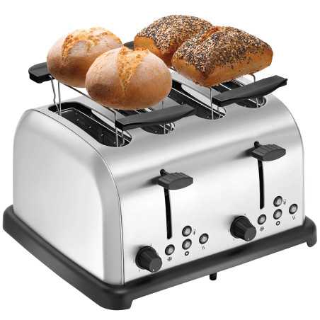 Torradora professional amb 4 ranures ideal per a bufets d'esmorzar, amb funcions avançades que inclouen descongelat, escalfat i torrat de panets i llesques de pa.