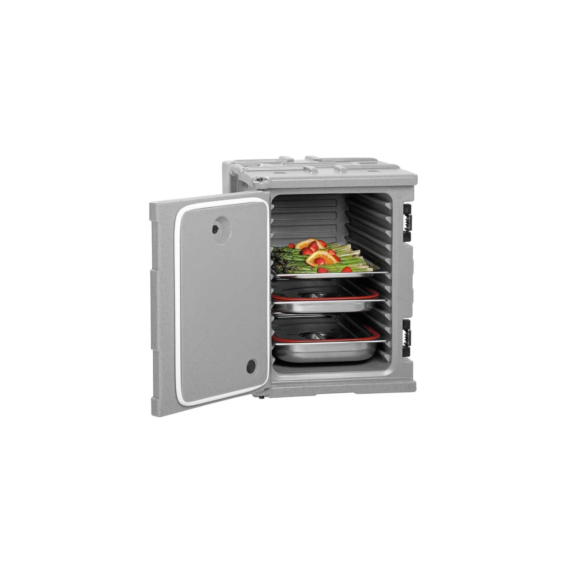 Contenidor de càrrega frontal sense calefacció, adequada per a aliments freds i calents. Per a càterings, esdeveniments o operacions fora de l'empresa, els aliments es poden transportar de manera segura i resistent a la temperatura en contenidors de format 1/1 GN.