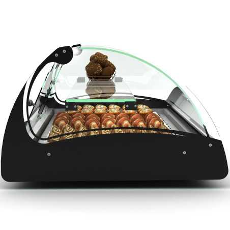 La vitrina escalfa tapes amb vidre corb i sistema de calor seca està dissenyada per mantenir els aliments calents a una temperatura constant de +70°C. Ideal per a bufets i taulells de pastisseria, pizza o xurros, aquesta vitrina destaca pel seu disseny funcional i elegant, sent una solució perfecta per a negocis d'hostaleria i restauració.