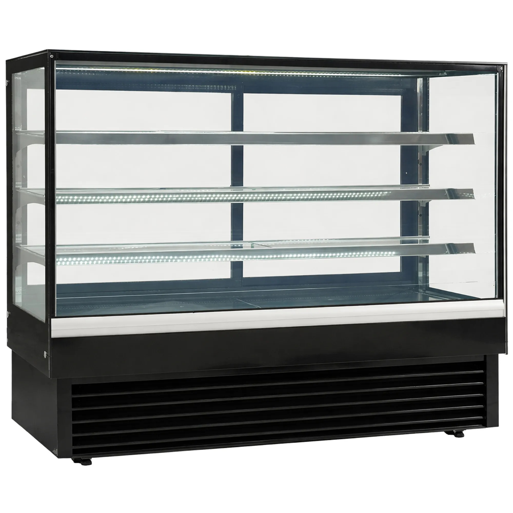La vitrina expositora refrigerada per a pastisseria de 1500 mm amb vidre recte està dissenyada per a negocis que requereixen la màxima capacitat d’exposició sense renunciar a una presentació elegant. El seu disseny modern, juntament amb la il·luminació LED integrada i la seva àmplia superfície d’exposició, permet destacar els productes i potenciar la venda en entorns professionals.