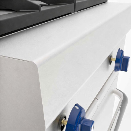 Thanks to its two burners, a 5 kW oven and a 4 kW salamander (gratinator), it allows you to cook on the burners and finish dishes quickly with golden, gratinated results, optimizing both time and kitchen space. It is also compatible with LPG or natural gas (depending on installation) and is designed for easy cleaning and maintenance, making it an ideal choice for professional kitchens seeking maximum productivity.