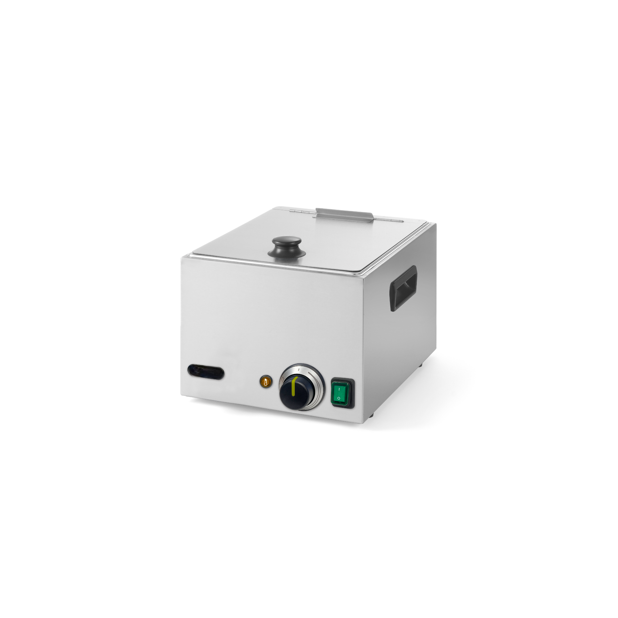 The 10-liter hot dog warmer is the perfect solution for keeping sausages warm at events, restaurants, and fast-food stands. Made of stainless steel, it features an adjustable thermostat up to 85°C to ensure the perfect serving temperature. Its design includes handles for safe transport and a lid with a cool-touch handle.