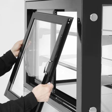 The refrigerated display case with 2 shelves is the ideal solution for presenting and keeping fresh products in perfect condition in hospitality environments. It features a stainless-steel housing with double glazing, high-intensity LED lighting and convenient access via a rear door, providing an attractive presentation and practical day-to-day use.