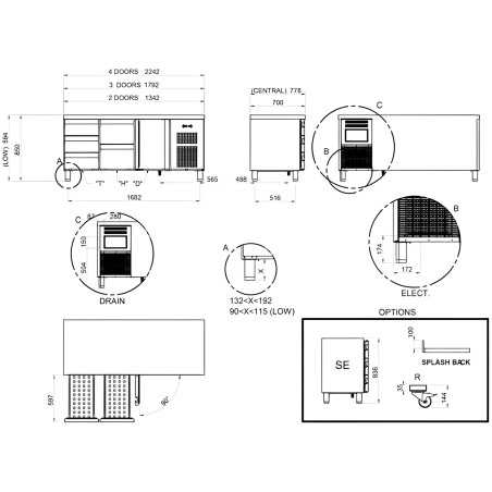 • Drawers with handle built-in stainless steel AISI 304 18/10 with perforated funds provided enough telescopic slides out to save the work plane