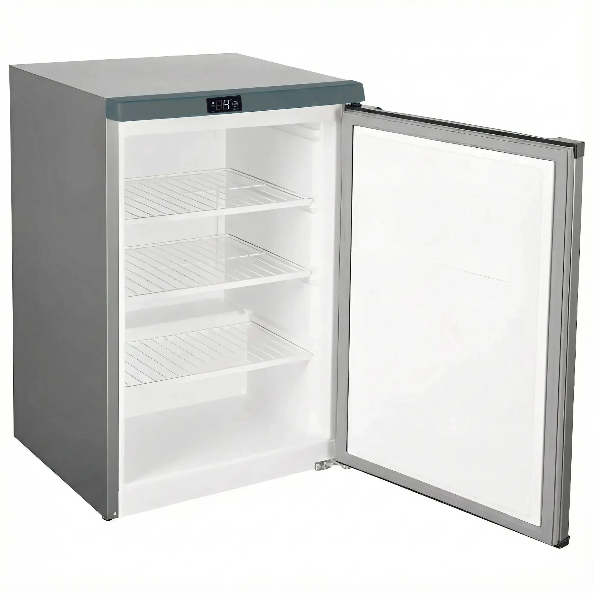 The 142-litre stainless steel professional refrigerator is an excellent solution for food and beverage storage in hospitality businesses and retail environments. Its stainless steel finish ensures greater durability, hygiene and easy cleaning. Its compact design allows optimal use of space, while the 3 adjustable shelves make interior organisation easy. In addition, it features an external thermostat and an automatic defrost system for greater convenience.