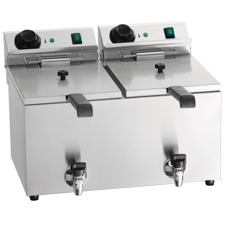 The professional double fryer with digital MDI control allows for precise and easy frying. With two independent tanks, each with a 9-liter capacity, it is perfect for hospitality and catering businesses. Thanks to its digital display, the temperature can be adjusted degree by degree and monitored at any time.