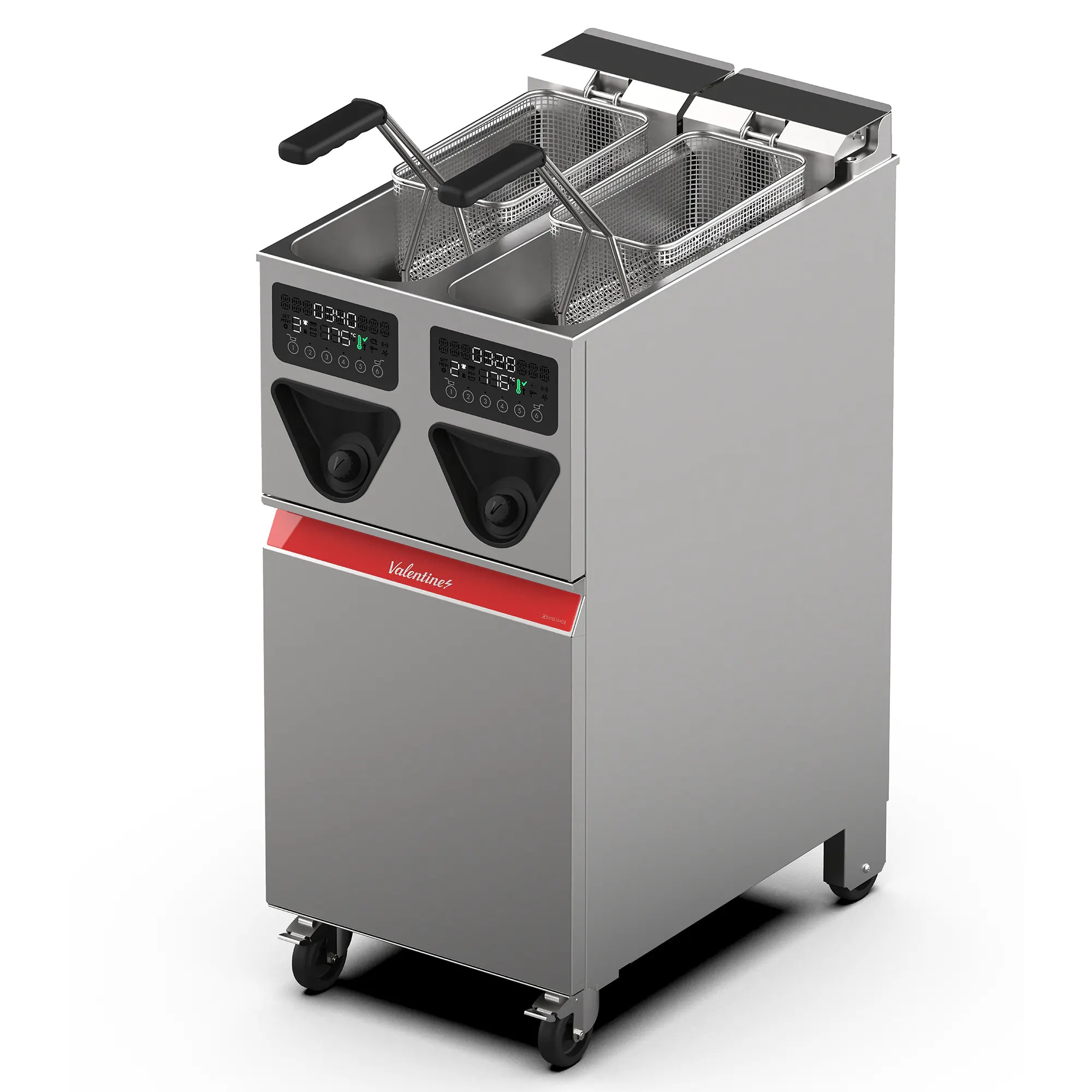 The Valentine Core Smart professional fryers are designed to deliver maximum performance with full control over cooking. Equipped with double baskets, braked castors, and an intelligent control system, they offer energy efficiency and adaptability to different loads and kitchen needs. Perfect for high-demand professional kitchens.