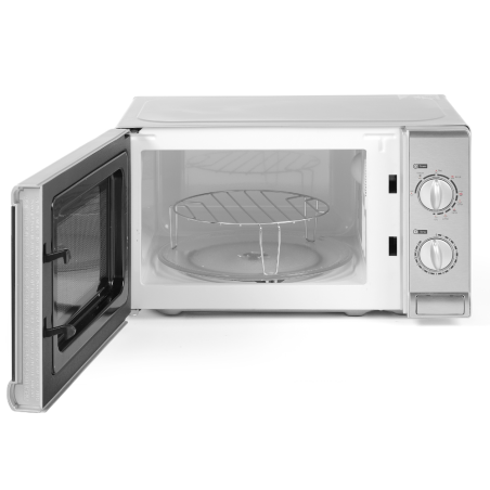 The microwave oven with grill function is the ideal choice for hospitality, cafés, and small fast-food establishments. Its multifunctional design allows efficient heating, defrosting, and grilling. With a 20L capacity and 700W power, this microwave ensures optimal performance in any professional kitchen.