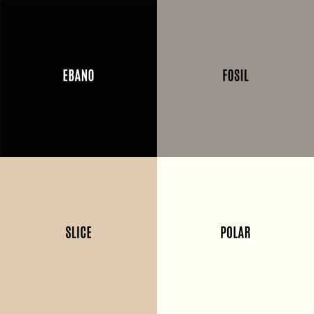 What colors are available? The tabletops are available in solid colors: ebano, fossil, slice, polar, carbon, platinum, and humo, ideal for matching any decor.