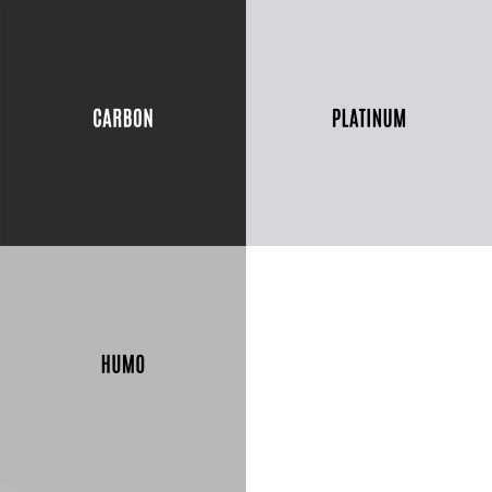 Customizable tables in solid colors: ebano, fossil, slice, polar, carbon, platinum, humo.
