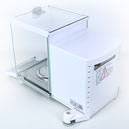 High-precision analytical balance with an extendable screen to avoid vibrations. Separate white backlit LCD screen from the balance body.