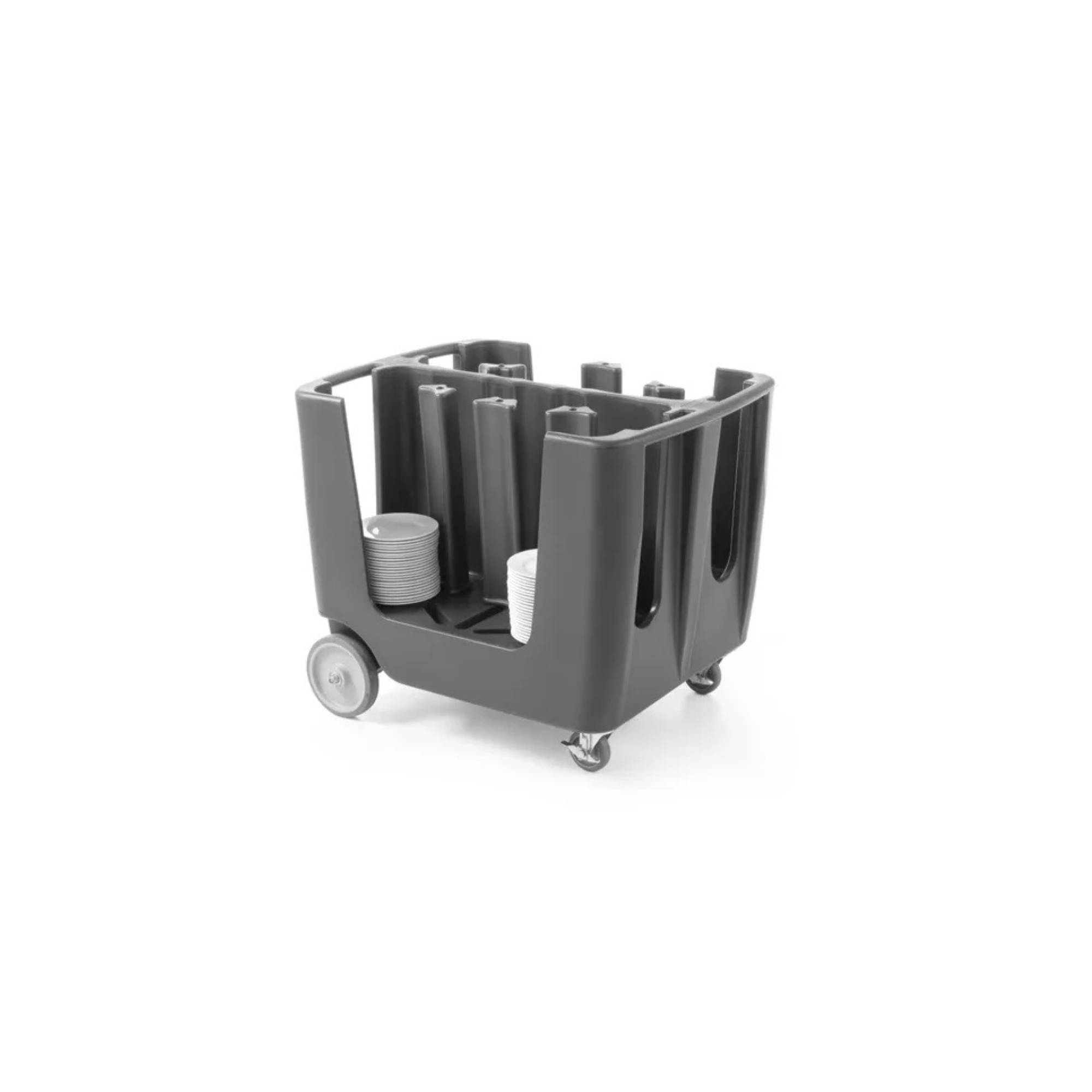 The professional plate transport cart is the perfect solution for safely moving dishware in hospitality and catering environments. Its low-density polyethylene structure protects plates from impacts, while its adjustable dividers accommodate different plate sizes. Equipped with reinforced wheels for smooth transport, even on uneven floors.