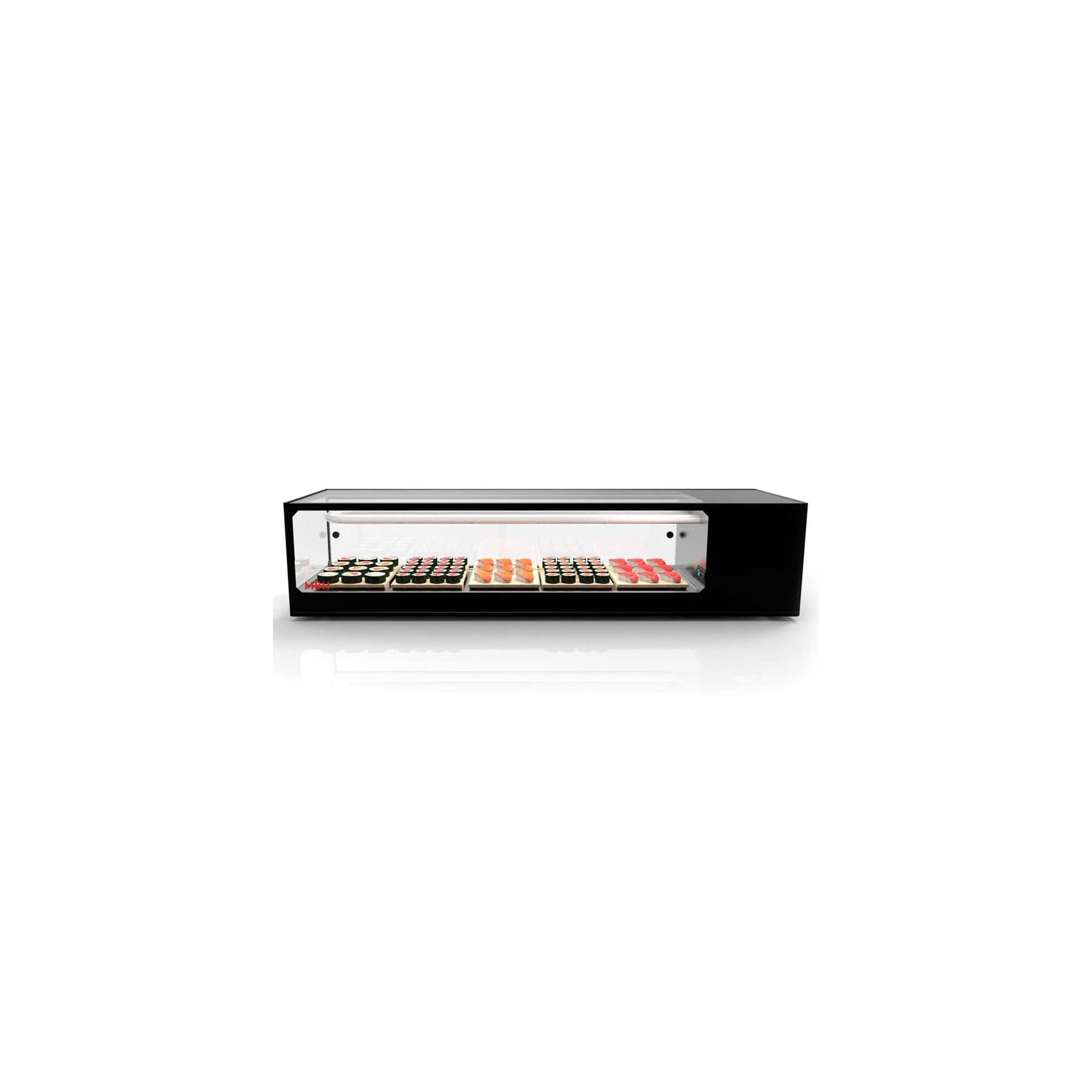 The Logic Sushi refrigerated display case is a compact countertop unit designed for bars, restaurants and sushi bars that need maximum visibility and stable chilled holding. Available with 6 or 8 GN 1/3 pans, and also in flat-well versions, it keeps food between +0/+4ºC in the “food zone” — ideal for sushi, sashimi and cold tapas ready to serve.