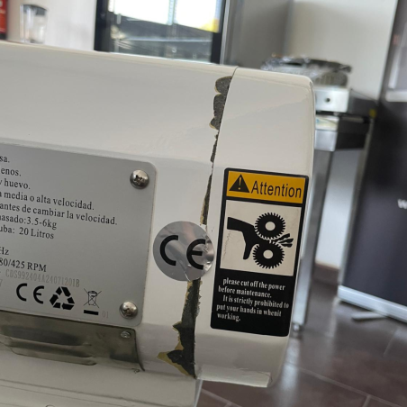This professional 20 litre planetary mixer is built for intensive use in bakeries, pastry shops and professional kitchens. It features mechanical speed control with 3 speeds and a safety system, and includes three tools (whisk, paddle and spiral hook) for whisking, mixing and kneading with consistent results. With up to 5 kg flour capacity and 1100 W power, it delivers reliable performance for creams, sponge cakes, meringues and small batches of sweet dough or bread dough.