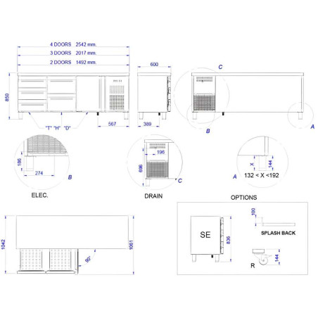 This stainless steel commercial undercounter fridge Series 600 with 4 doors is designed for hospitality and professional kitchens, combining refrigerated storage and a worktop in a single unit. It’s an ideal refrigerated prep table to keep fresh ingredients within reach, improving workflow in high-performance kitchens.