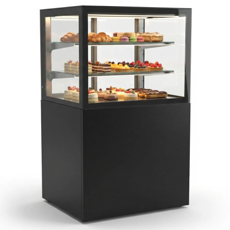 This refrigerated display case is a compact, ready-to-use solution designed to showcase and preserve products with maximum visibility in any commercial space. It is manufactured with high-quality double-glazed glass and a no visible screws design, which enhances product presentation and makes daily cleaning easier. It features dual LED lighting to prevent shadows and highlight the displayed items, as well as adjustable tempered glass shelves to adapt the interior to different product types and increase usable capacity.