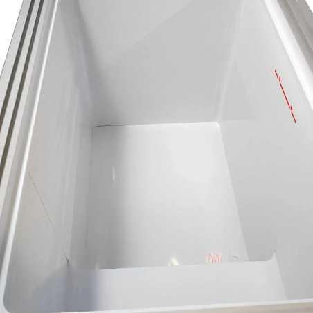 El congelador horizontal, con puerta abatible de cristal, está diseñado para la conservación de alimentos congelados en entornos de hostelería y comercios. Este congelador de alta eficiencia energética ofrece una visibilidad óptima del contenido, facilitando la presentación de productos como helados y alimentos congelados. Su aislamiento en poliuretano de alta presión y su diseño minimizan las pérdidas térmicas, manteniendo una temperatura estable y eficiente.