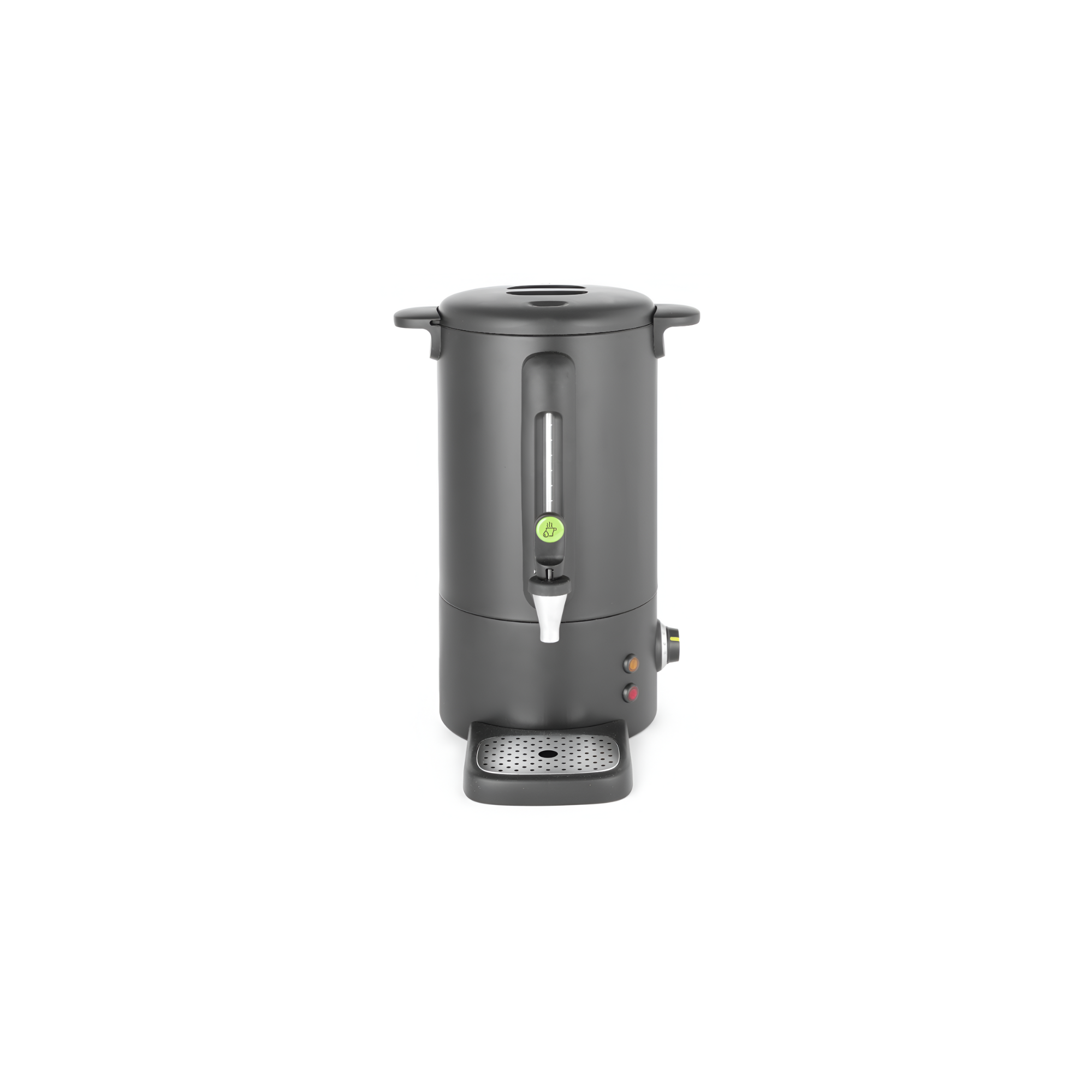 El termo para bebidas calientes negro mate combina elegancia y funcionalidad, siendo una incorporación imprescindible para cualquier bufé o bar moderno. Diseñado en acero inoxidable con un acabado negro mate, cuenta con un grifo antigoteo, una bandeja de goteo magnética y un indicador de nivel de agua de vidrio. Su sistema de temperatura ajustable de 30°C a 100°C permite mantener las bebidas a la temperatura ideal.
