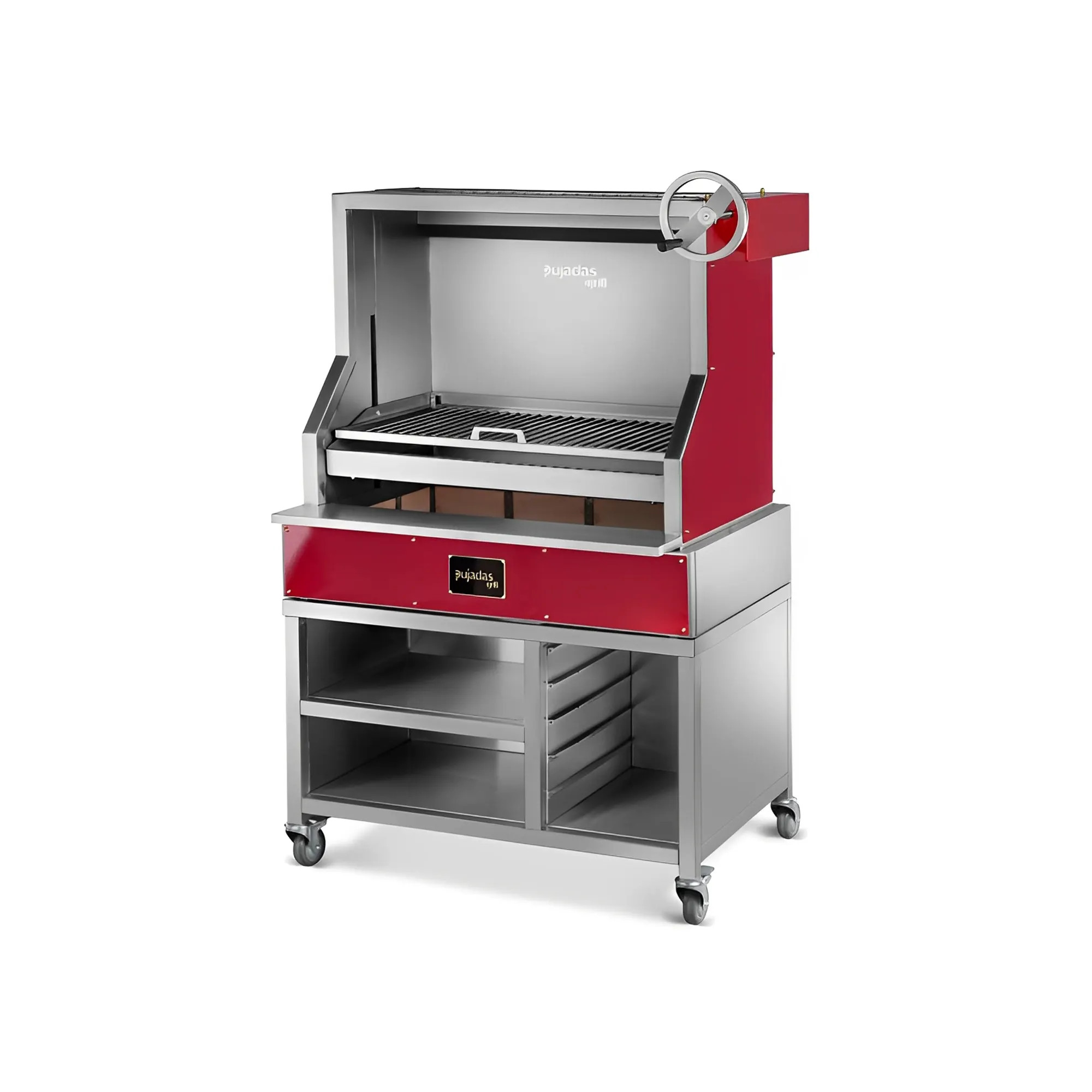 La Parrilla abierta profesional con altura regulable y estantes está fabricada en acero inoxidable de alta calidad, lo que la convierte en una opción robusta y duradera para cualquier entorno profesional. Su diseño abierto es ideal para cocinas interiores, exteriores o showcooking. Incorpora una rejilla en forma de V que canaliza la grasa y jugos para una cocción más limpia y uniforme, realzando los sabores. Además, su sistema de ajuste mediante volante permite regular la altura de cocción con precisión.