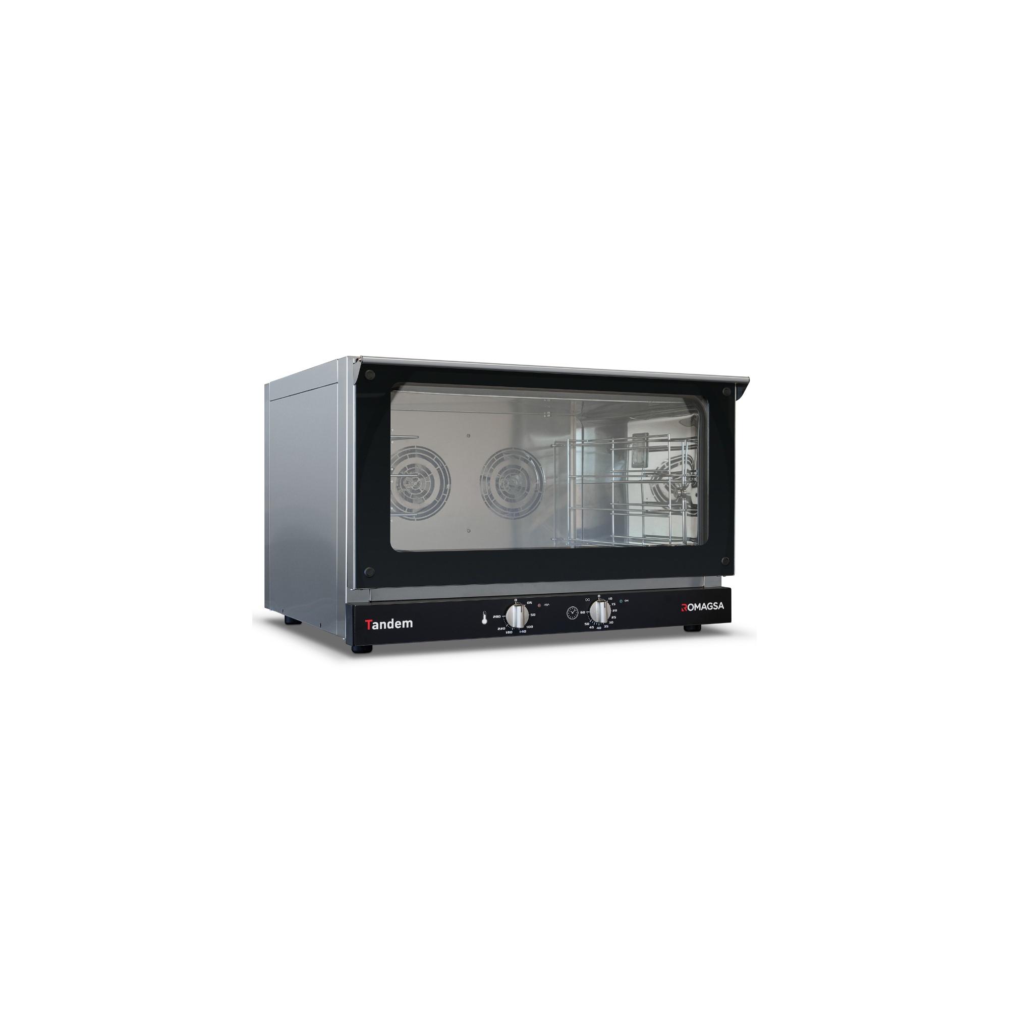 La gama de hornos profesionales Tandem 4 está diseñada para panaderías, pastelerías y cocinas industriales que necesitan un equipo compacto, eficiente y de mayor capacidad que la serie Tandem 3. Fabricados en acero inoxidable y con capacidad para 4 bandejas de 600x400 mm, estos hornos garantizan un horneado uniforme y sencillo de manejar gracias a su panel analógico.