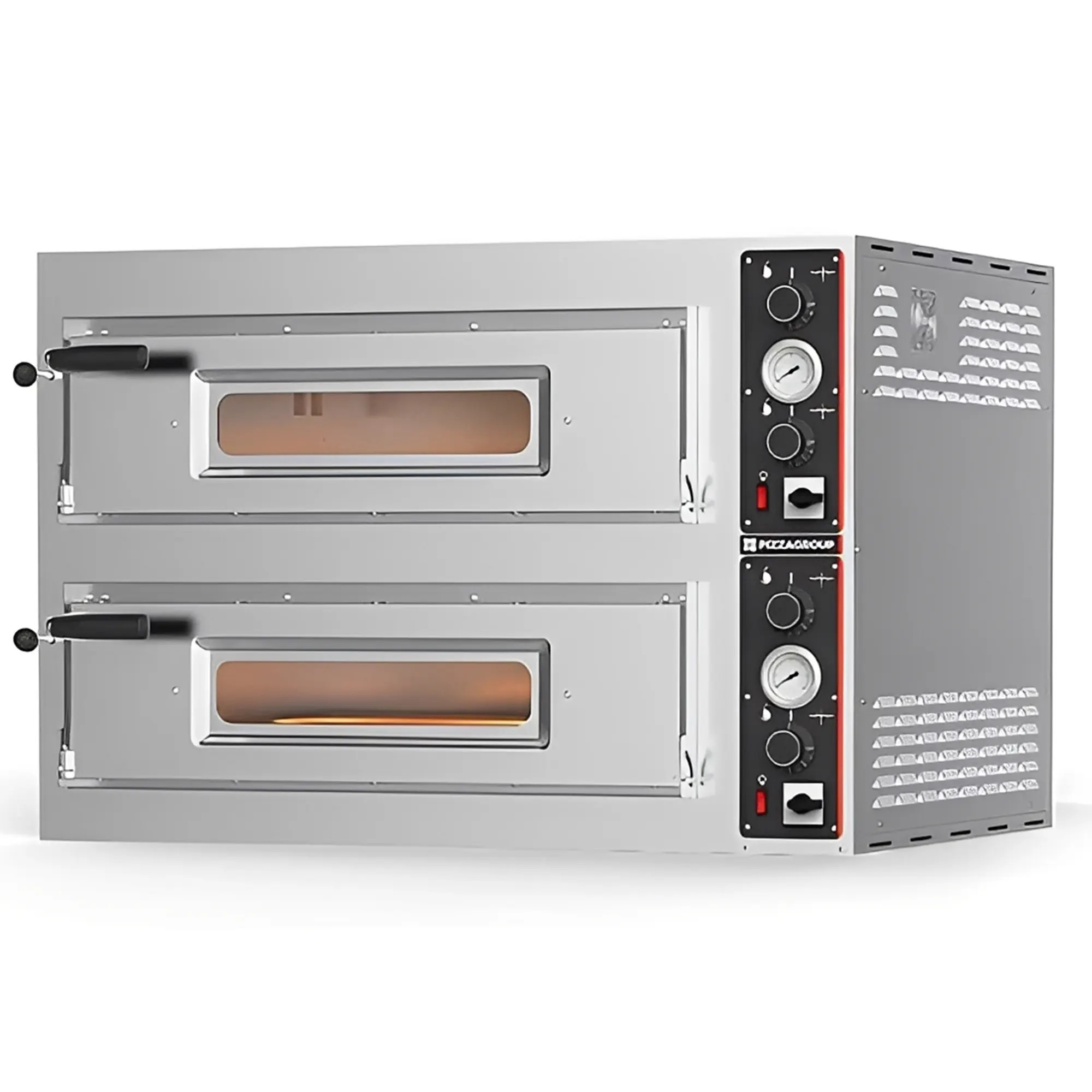 Los hornos eléctricos Entry MAX 8 y 12 están diseñados para entornos profesionales que requieren máxima eficiencia y capacidad de producción. Equipados con dos cámaras de cocción independientes, estos modelos permiten hornear grandes volúmenes de producto de forma simultánea, manteniendo una cocción uniforme gracias a su excelente aislamiento térmico. Ideales para panaderías, pizzerías y cocinas industriales.