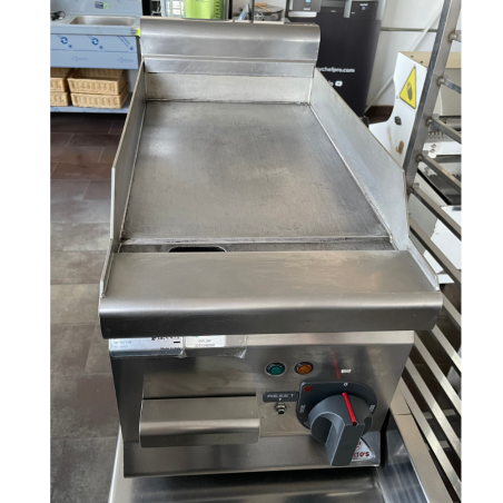 La plancha eléctrica lisa profesional de sobremesa es un equipo de cocción industrial compacto y de alto rendimiento, ideal para maximizar la productividad en cocinas con espacio reducido. Fabricada con una superficie de trabajo en acero inoxidable AISI 304 de máxima calidad, esta parrilla eléctrica de ocasión garantiza una excelente transmisión térmica gracias a sus resistencias blindadas de acero Incoloy. Su diseño ergonómico incluye una placa de acero satinado ligeramente inclinada que facilita la evacuación de grasas hacia su recipiente estanco, asegurando asados perfectos, saludables y una limpieza extremadamente ágil tras cada servicio.