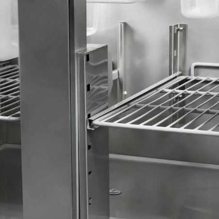 La mesa de preparación refrigerada es una solución ideal para negocios de hostelería, restauración y pequeños comercios de alimentación. Su amplia superficie de trabajo permite colocar utensilios como tablas de cortar, bandejas y cuencos, facilitando la preparación de ingredientes. Además, incorpora una vitrina refrigerada con tapa de acero inoxidable, ideal para almacenar productos frescos en cubetas GN1/6 (no incluidas), permitiendo una rápida disposición de salsas, aderezos y vegetales troceados. Su interior refrigerado ofrece un almacenamiento eficiente para verduras, salsas y otros alimentos, manteniéndolos a una temperatura estable entre +2°C y +8°C, ajustable mediante un panel de control digital. Gracias al uso del refrigerante ecológico R290, este equipo garantiza una larga vida útil con un bajo consumo energético.