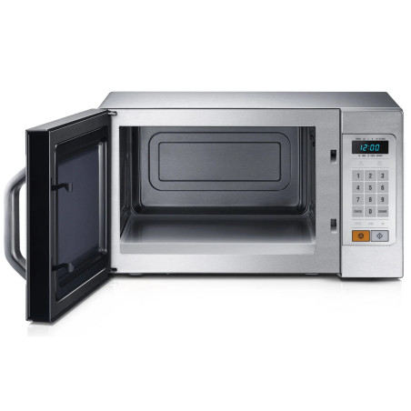 El Microondas industrial Samsung digital 26 litros forma parte de la línea profesional Snackmate, diseñada para negocios de restauración que necesitan rapidez, resistencia y facilidad de uso en espacios reducidos. Su estructura de acero inoxidable y su cámara sin plato giratorio permiten trabajar con mayor capacidad y obtener una cocción uniforme incluso en usos intensivos.
