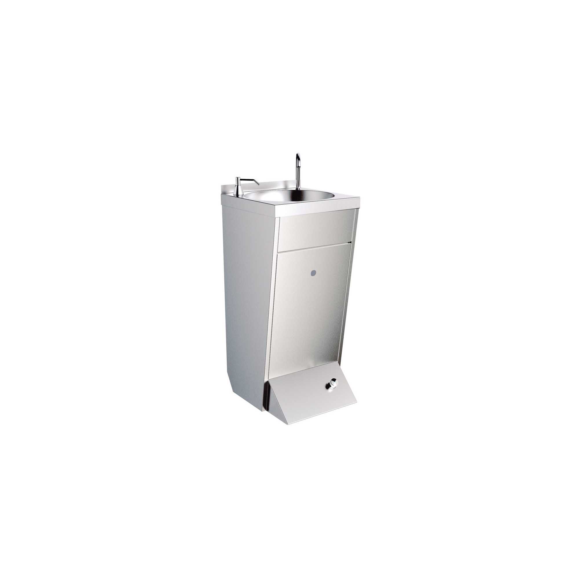 Lavamanos de pie profesional de acero inoxidable con grifo con caño giratorio, pulsador y jabón