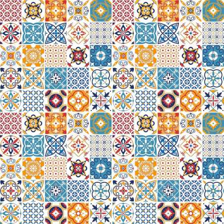 Bandeja presentación melamina Colorido diseño hidráulico inspirado en el mediterráneo.