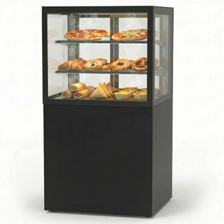 Esta vitrina expositora Sahara es una solución compacta y lista para usar, pensada para exponer y mantener producto caliente con máxima visibilidad en cualquier espacio comercial. Está fabricada con cristales cámara de alta calidad y un diseño sin tornillería visible, lo que mejora la presentación del producto y facilita la limpieza diaria. Incorpora doble iluminación LED para evitar sombras y destacar el género, además de estantes de cristal templado regulables para adaptar el interior según el tipo de producto y aumentar la capacidad útil.