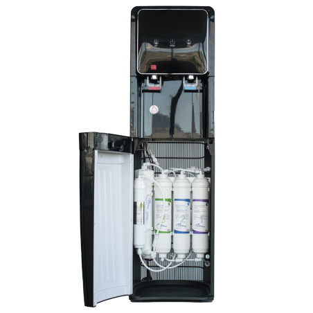 La Fontaine à Eau sur Pied Noire avec Osmose Inverse est la solution d'hydratation intégrale qui associe un design colonne élégant à la technologie de purification la plus avancée. Cet équipement sur pied intègre dans un seul châssis vertical un groupe froid et un système complet d'osmose inverse, offrant une eau de qualité maximale sans besoin de meuble auxiliaire.