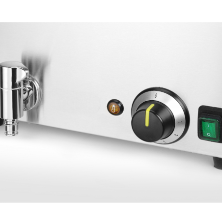 Bain-marie avec robinet de vidange, 3 bacs GN 1/3 avec couvercle et température réglable de 30 °C à 85 °C. Conception en acier inoxydable avec système de chauffage efficace.