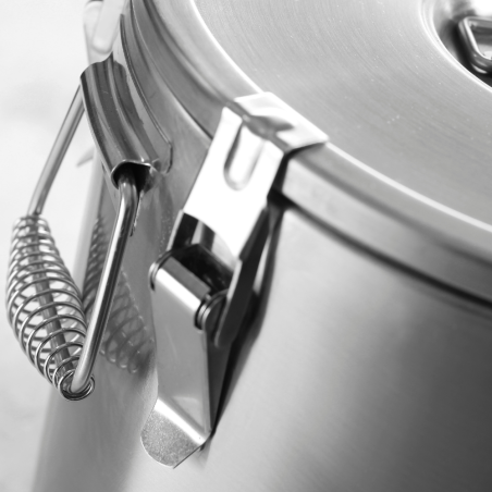 Conteneur isotherme en acier inoxydable pour traiteurs. Maintient la température jusqu’à 8 heures. Disponible en 10L, 20L et 35L.