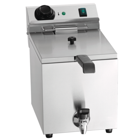 Friteuse professionnelle avec contrôle numérique pour un réglage précis de la température. Capacité de 9 litres, robinet de vidange et zone froide pour une utilisation efficace en restauration et hôtellerie. Idéale pour une friture parfaite.