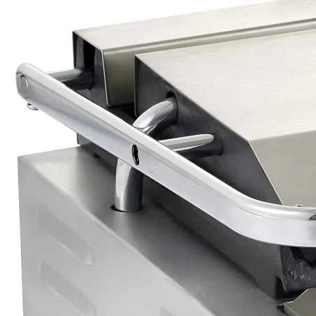 Le grill électrique professionnel Worldmai à plaques rainurées (44x41 cm) assure une cuisson uniforme des viandes et paninis. Inox durable, bac récupérateur de graisses et surface antiadhésive pour un usage intensif en snack.