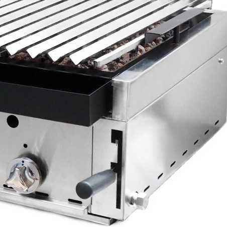 Barbecue à gaz de lave volcanique 120, ce modèle fonctionne avec une grille monobloc relevable sur 3 hauteurs bleuies ou inox. Préparé pour le gaz butane/propane. Comprend des injecteurs pour le gaz naturel.
