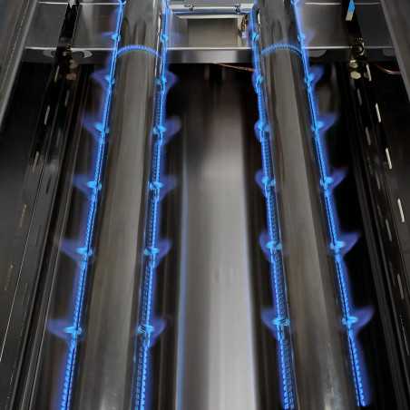 Barbecue gaz lave volcanique 120 avec plastron, ce modèle fonctionne avec 4 grilles basques inclinables ou avec une grille monobloc relevable sur 3 hauteurs bleuies ou inox. Préparé pour le gaz butane/propane. Comprend des injecteurs pour le gaz naturel.
